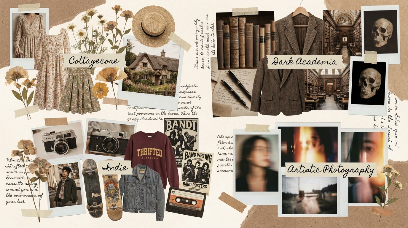 - Die beliebtesten: Cottagecore (ländliche Romantik), Dark Academia (intellektuelle Ästhetik), Indie/Alt (Alternative Szene)